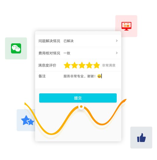 客戶可通過微信、網站等報修渠道進行滿意度評價,您可以通過客服人員回訪客戶獲得滿意度數據
