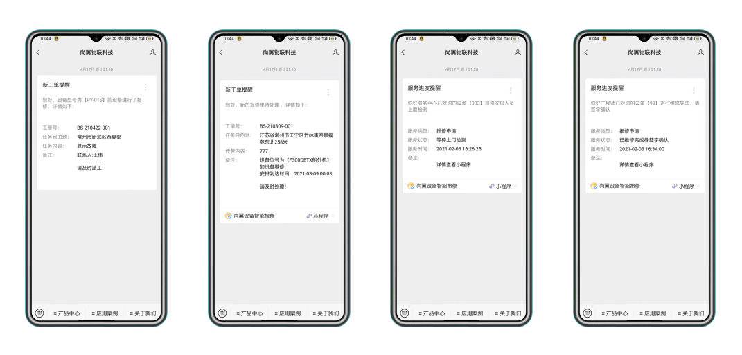 用戶新工單實時提醒客服調(diào)度人員 ;調(diào)度人員安排技師上門檢修,及時告知技師; 實時告知用戶當(dāng)前進度; 維修完成邀請用戶進行簽字確認;